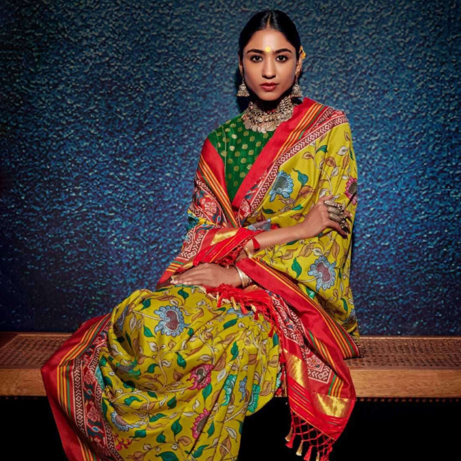 Discover top trends with our luxe collection: Samsara elegance, Kalamkari x Patola fusion, Paithani ki kalamkari and the timeless charm of Pichwai Leela!